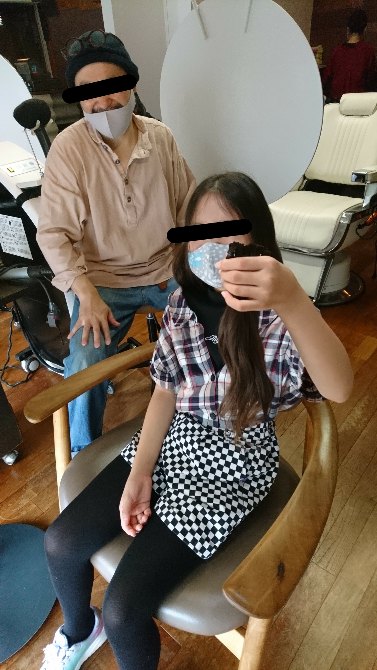 娘は十分な長さがありますが、少し長めに残したいとのことなので、ギリギリ31㎝切ってもらいます。